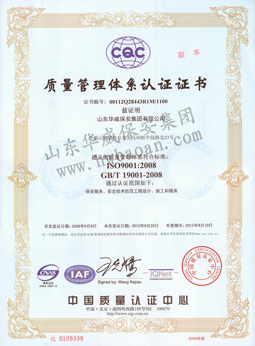 ISO9001質(zhì)量管理體系認(rèn)證證書
