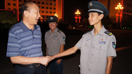 荀金慶一行先后來到駐市政府、曲師大、濟(jì)寧學(xué)院、佳美家居保安班,看望慰問當(dāng)班執(zhí)勤的隊員們,給他們送上中秋月餅、水果和節(jié)日的祝福。