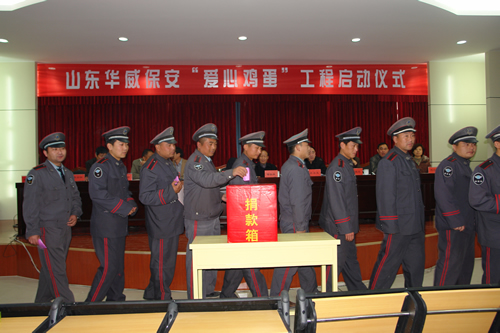為了向生活在貧困線以下的兒童奉獻一片愛心,讓貧困家庭的孩子們每天能吃上一個雞蛋,公司號召全體員工,通過啟動捐獻“愛心雞蛋”工程,以實際行動讓貧困兒童真切地感受到華威保安仁義博愛的情懷,為加強對華威保安“愛心雞蛋”工程的管理,公司還決定成立華威保安“愛心雞蛋”工程管理委員會,董事長、總裁荀金慶任會長,首席經(jīng)濟顧問、我國著名經(jīng)濟學