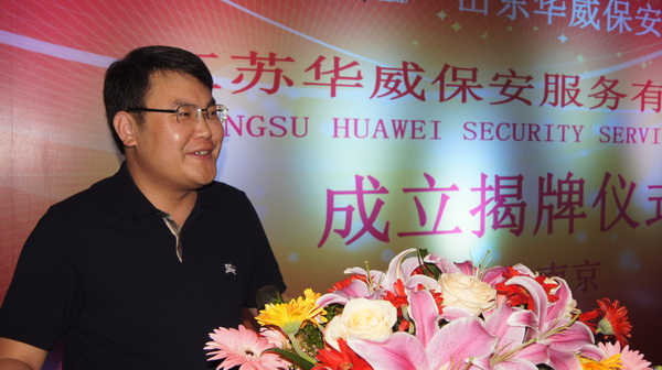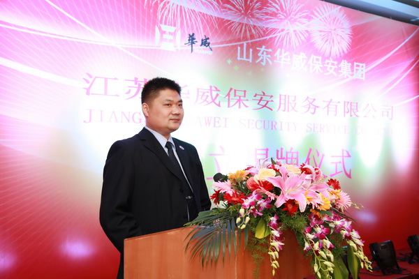 山東華威保安集團(tuán)董事長(zhǎng)、總裁荀金慶致辭,向多年來關(guān)心支持集團(tuán)公司發(fā)展的各級(jí)領(lǐng)導(dǎo)和社會(huì)各屆人士表示衷心感謝。簡(jiǎn)要介紹了公司的發(fā)展歷程,并對(duì)下步工作提出了希望和要求。他表示:“集團(tuán)公司在南京成立江蘇華威公司,是為了更好的開發(fā)江蘇地區(qū)安保業(yè)務(wù),滿足長(zhǎng)三角地區(qū)新市場(chǎng)的需求,是深入貫徹集團(tuán)“高端發(fā)展、轉(zhuǎn)型升級(jí)”及“走出去”戰(zhàn)略的又一有力舉措,江蘇公司的成立代表著華威進(jìn)軍華東市場(chǎng)道路上又邁出了一大步。成立后的江蘇公司將借助長(zhǎng)三角經(jīng)濟(jì)帶這一新環(huán)境,采取更加符合開展地域特點(diǎn)的人事、用工、分配、管理新機(jī)制,形成更加有利于公司業(yè)務(wù)開拓的內(nèi)部環(huán)境和運(yùn)營(yíng)機(jī)制,依法經(jīng)營(yíng)、誠(chéng)信經(jīng)營(yíng),為客戶提供更加專業(yè)、高效的安保服務(wù),打響來至齊魯大地、東方圣城的華威保安品牌。”