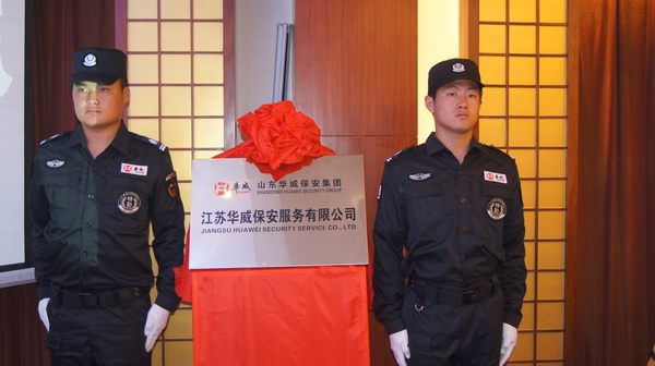 5月16日,山東華威保安集團(tuán)江蘇華威保安服務(wù)有限公司在南京鼓樓區(qū)雙門樓賓館舉行開業(yè)儀式。江蘇省山東商會(huì)總會(huì)長(zhǎng)魯宏振先生、南京市公安局保安監(jiān)管大隊(duì)大隊(duì)長(zhǎng)紀(jì)鐵軍先生、南京市公安局保安監(jiān)管大隊(duì)教導(dǎo)員、南京市保安協(xié)會(huì)副秘書長(zhǎng)徐雪峰先生,山東華威保安集團(tuán)公司董事長(zhǎng)、總裁荀金慶等領(lǐng)導(dǎo)出席揭牌儀式并為“江蘇華威保安服務(wù)有限公司”揭牌。
