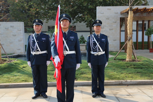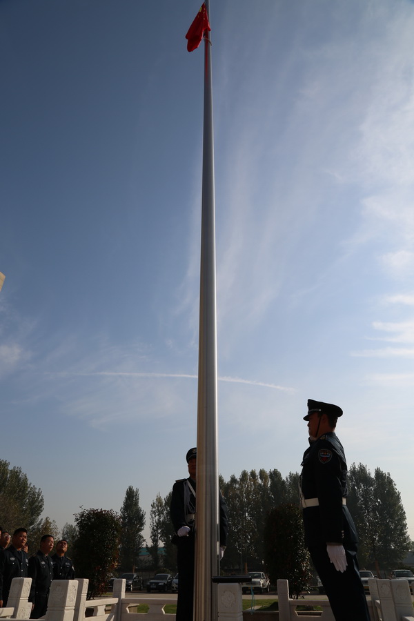 上午8點58分,集團總部全體員工、保安員代表齊聚新辦公大樓門前,列隊參加升旗儀式。當(dāng)升旗手正步進場時,在莊嚴(yán)的國歌聲中,大家仰視五星紅旗冉冉升起,迎風(fēng)招展。隨后,焰火騰空而起,劃出了一道道優(yōu)美的弧線,象征著華威的事業(yè)蒸蒸日上,此時此刻,全體華威同仁無不激動萬分、歡欣鼓舞。