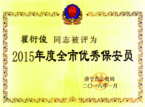 近日,濟(jì)寧市公安局召開了全市保安監(jiān)管工作暨表彰會(huì)議,會(huì)議上下發(fā)了“關(guān)于表彰2015年度全市優(yōu)秀保安公司和優(yōu)秀保安員的通報(bào)”,華威保安集團(tuán)被評(píng)為全市優(yōu)秀保安服務(wù)公司,翟衍俊、孔祥雷、張凡貞3名保安員榮獲優(yōu)秀保安員稱號(hào)。
