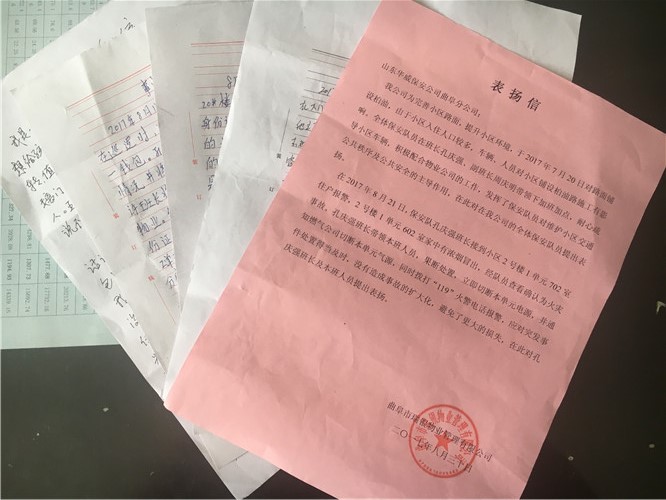 近期,曲阜分公司保安隊(duì)員在執(zhí)勤中做好人好事不斷,當(dāng)事人也分別送來多封表?yè)P(yáng)信、感謝信: 2017年8月15日,駐裕隆實(shí)業(yè)保安班隊(duì)員孔祥東在巡邏時(shí)撿到錢包一個(gè),內(nèi)有...