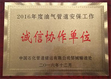 12月20日,安防公司被中石化管道儲運有限公司鄒城輸油處授予“2016年度油氣管道安保工作誠信協(xié)作單位”榮譽稱號。 今年以來,由安防公司承攬的中石化管道儲運有...