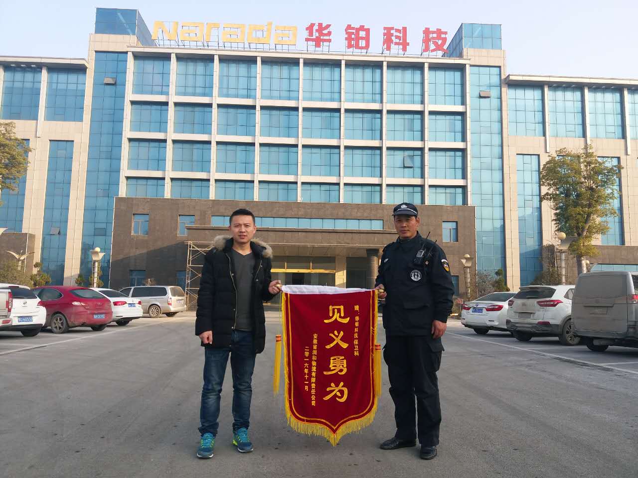 山東華威保安集團菏澤分公司駐安徽華鉑再生資源科技有限公司項目部保安隊員王金輝,于11月25日晚8時左右,在華鉑公司一號門執(zhí)勤時發(fā)現(xiàn)門外有一輛載有電池的白色半掛車(皖K...