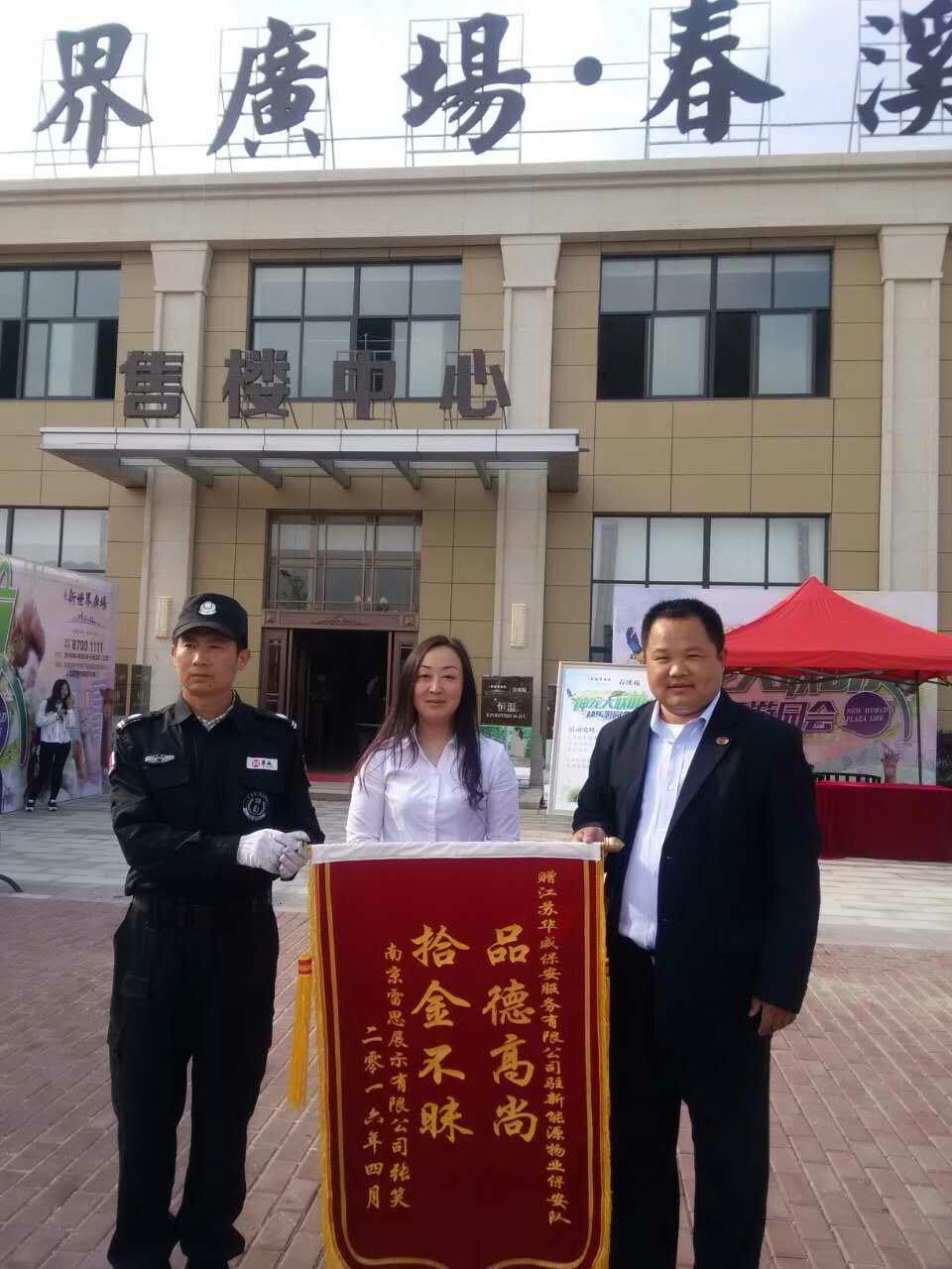2016年4月29日早晨7點35分左右,江蘇華威保安服務(wù)有限公司駐新世界春溪苑項目保安員陳慶力在售樓處周圍巡查時,發(fā)現(xiàn)在樓后有一黑色的皮錢包,見附近沒有其他人遂將其檢起拿...